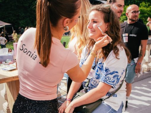 Scène géante, régie technique professionnelle, jeux de lumières, signalétique sur-mesure et zones chill colorées: tout a été conçu pour recréer les codes d’un vrai festival et plonger les participants dans une ambiance unique, du jour jusqu’à la nuit.
